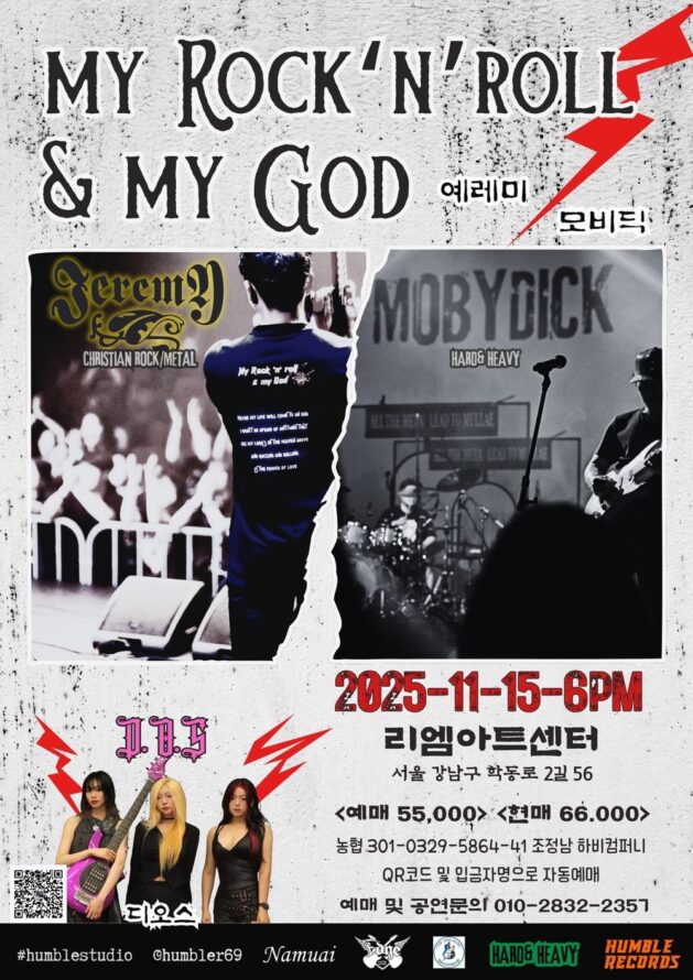 대한민국을 대표하는 관록의 Hardrock <모비딕>, 크리스찬 심포닉 프로그레시브의 절정 <예레미>의 콘서트가 있습니다. 하드록과 프로그레시브의 정수를 보여드립니다. 오프닝: 밴드 디오스